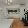 se poate iesi in curtea libera de 35 mp frumos amenajata cu vegetatie matura, gazon, zona de gratar si mobilier de gradina
